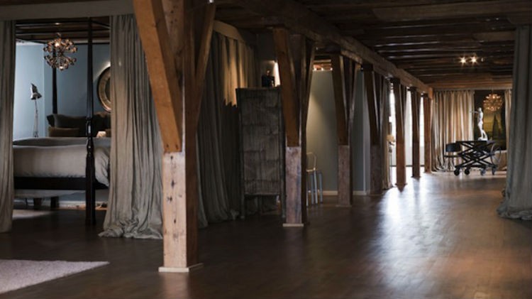 To magiczne wnętrze. Trochę teatralne, muzealne przez liczne kotary oddzielające między sobą pomieszczenia i wiele dzieł sztuki. Prezentowany loft znajduje się z XVIII-wiecznym magazynie w Amsterdamie.