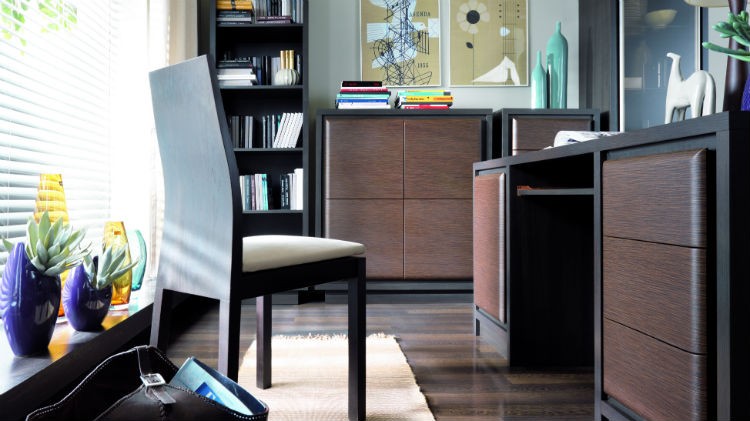 Miejscu do pracy elegancji dodają meble o barwie ciemnego drewna, jak wybarwienie wenge czy dąb wenge magia.