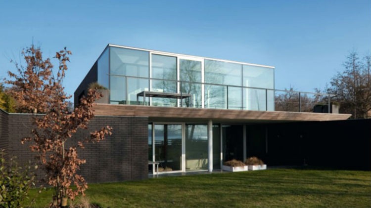 By optymalnie wykorzystać atrakcyjne położenie działki i jak najkorzystniej wkomponować dom w delikatnie wznoszący się brzeg, architekci zaprojektowali duży, dwukondygnacyjny obiekt z 360 m² powierzchni mieszkalnej i płaskim dachem, który otwiera się na zbiornik wodny poprzez szklany front na piętrze. Dzięki temu z balkonu i przyległej jadalni rozpościera się niesamowity, panoramiczny widok na ogród i małą przystań dla łódek oraz na jeden z najpiękniejszych fragmentów holenderskiego wybrzeża, od jeziora Veerse i jego dwóch wysp, aż po zabytkowy zarys małej miejscowości Veere na przeciwległym brzegu.
