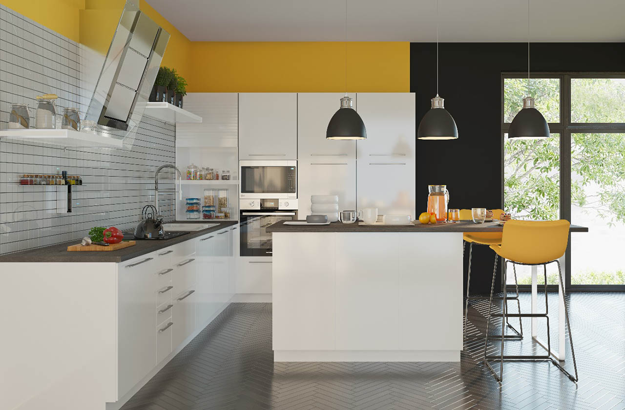 Kiedy już mamy pewność, że nasz projekt kuchni jest funkcjonalny i spełni nasze oczekiwania na co dzień, warto pomyśleć także o designie. W końcu kuchnia to miejsce, w którym przebywamy codziennie: dobrze, aby było urządzone modnie i w zgodzie z gustem domowników. Ciągle niezwykle modne są meble do kuchni z białymi frontami, inspirowane skandynawskimi trendami w aranżacji wnętrz. Jeżeli lubisz biel, ale minimalizm niekoniecznie jest Twoim ulubionym style, postaw na nowoczesność, łącząc białe szafki z meblami w innych kolorach. Ciekawym pomysłem może być przełamanie dominującej bieli przy wykorzystaniu jednego rzędu szafek, górnego lub dolnego, w kontrastowym, nasyconym kolorze, na przykład czerwonym. Podobny, oryginalny efekt uzyskamy, ustawiając przy kuchennym stole lub wyspie krzesła w różnych kolorach: czerwone, fioletowe, zielone, żółte.