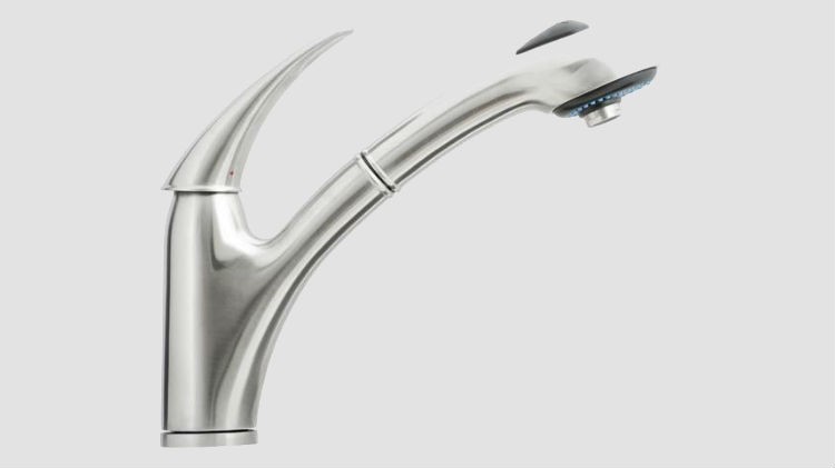 Iris – cicha bateria kuchenna o klasycznym kształcie, zaopatrzona w wyciąganą wylewkę, obrotowa o 120°. Produkt przeznaczony do użytku domowego, wyróżniający się niecodziennym designem, doskonale wpisującym się w każdą aranżację kuchni. Wymiary: 272×255 mm. Cena detaliczna: 999 PLN/brutto.