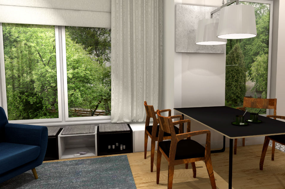 Mieszkanie zostało gruntownie odnowione i dopasowane do aktualnych potrzeb współczesnej rodziny. Oczekiwania domowników były dość jasno określone. Każdy domownik powinien mieć swoje miejsce. Musieliśmy dopasować pokój dla nastolatka i pokój dla jego dużo młodszej siostry. Potrzebne było również wygospodarowanie przestrzeni na domowe biuro. Niestety nie wszystkie ściany mogliśmy dowolnie modyfikować. Rzuty przedstawiają stan przed i stan po zmianie pomieszczeń.