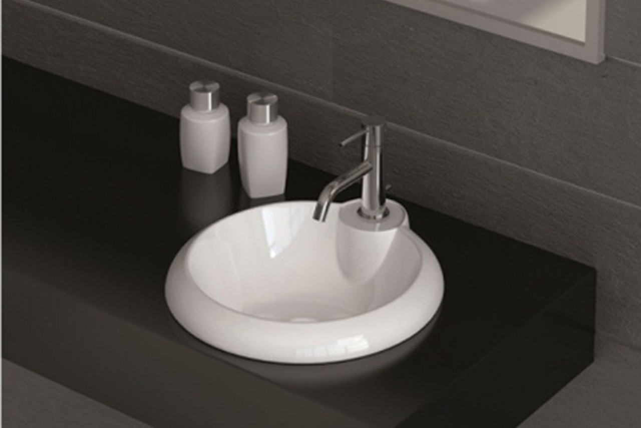 Okrągłe elementy ceramiczne polecane są zarówno w luksusowej, jak i rodzinnej aranżacji łazienki „dla dwojga”, gdzie na jednym blacie umieszczane są dwie misy ceramiczne.