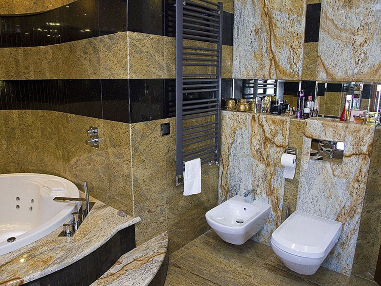 Współczesna architektura pozwala ludziom z wyobraźnią w sposób niebanalny łączyć wytwory natury i zdobycze cywilizacji. Ciekawa aranżacja pomaga przeistoczyć nawet najmniej obiecujące pomieszczenie w gustowne i wyrafinowane wnętrze, które stanie się oazą myśli i marzeń. Taką właśnie funkcję może w każdym domu spełnić łazienka, gdzie nasycone, promienne barwy płytek granitowych Kashmir Gold z oferty RR Granity z powodzeniem przeniosą nas w tajemniczy świat orientu, kolonialnych połyskliwych tkanin oraz wonnych olejków – w atmosferę luksusu i wyrafinowanej prostoty.