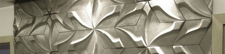 Prefabrykowane płyty ścienne z betonu architektonicznego 3D do stosowania jako okładziny we wnętrzach. Dzięki temu że są one impregnowane można je stosować również np. w kuchni czy łazience. Wzór można ułożyć zarówno na całą ścianę lub tylko na jej fragment tworząc trójwymiarowe dekoracje. Długość: 97,7 cm | Szerokość: 65,4 cm Grubość: 2,1 cm