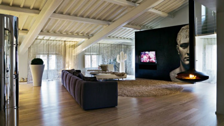 Oto dowód na to, że stary strych można zaadaptować w taki sposób, że zapiera dech. Mimo że okna są bardzo mało, udało się poprzez lekkie białe zasłony rozświetlić przestrzeń wokół nich. Do tego lekkie dębowe podłogi i białe belki na suficie wnętrze nabrało przestrzeni.