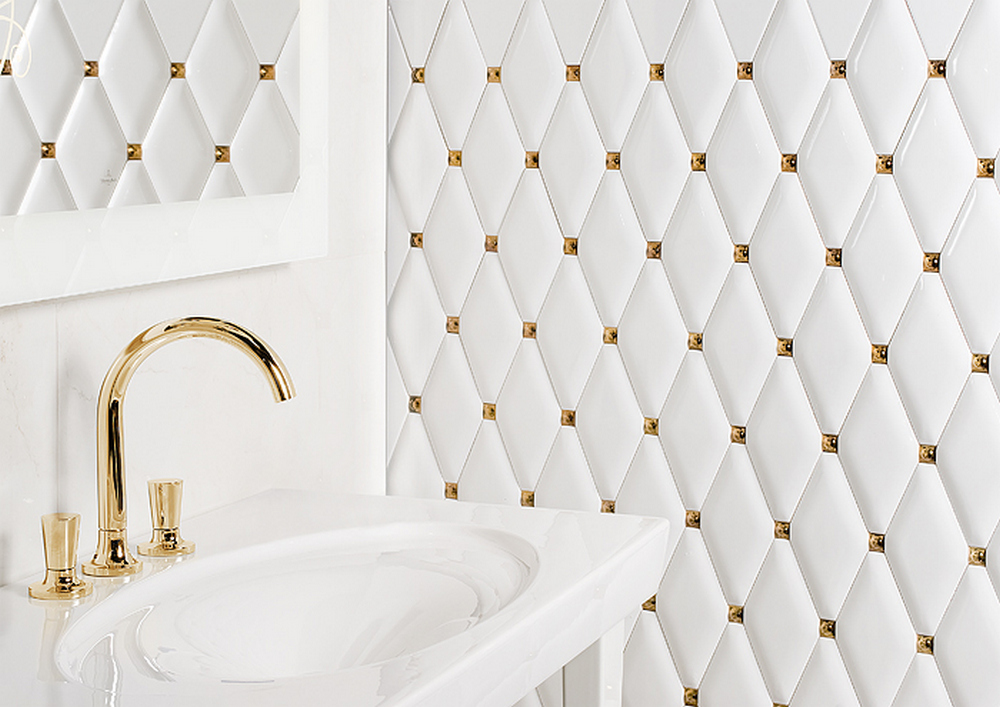 Geometryczne płytki firmy DUNIN z kolekcji CARAT są efektownym połączeniem tradycji i designu. Ich wypukła struktura i lekka forma buduje w pomieszczeniach przestrzeń, dając efekt trójwymiarowości. Płytki wyznaczają nowy trend aranżacji nowoczesnych łazienek, jednocześnie przełamując stereotyp dotyczący stosowania w łazience produktów w prostokątnej formie. Odpowiedni dobór dekorów tworzy wraz z płytkami kompletną, efektowną dekorację, dlatego dodatkowe ozdoby są zbędne.