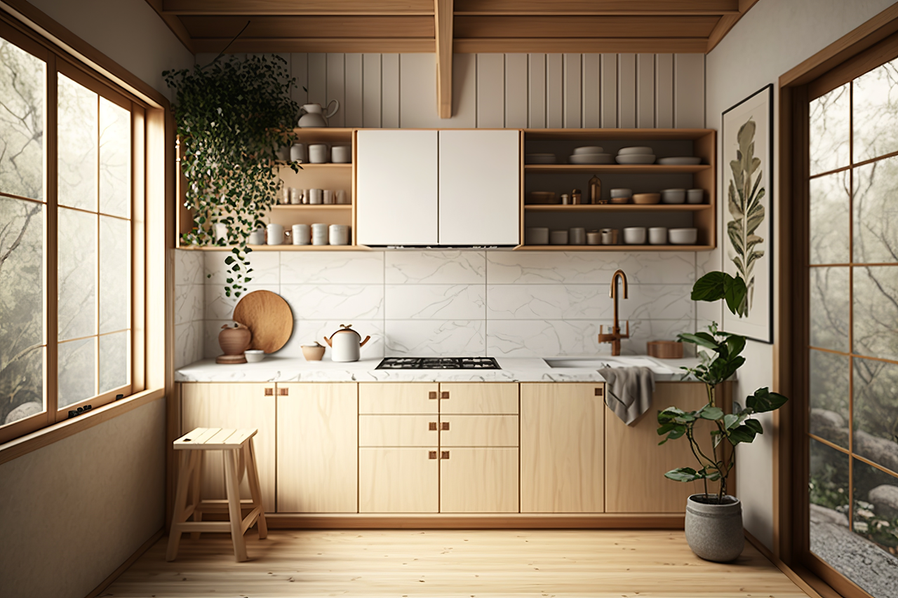 • Styl japandi – polega na łączeniu dobrze znanego designu skandynawskiego z elementami aranżacji japońskiej. To bardzo designerski, stonowany styl, który bazuje na naturalnych materiałach, jasnych odcieniach, funkcjonalności i minimalizmie. Wprowadza do wnętrz harmonię i spokój, a także doskonale spaja przytulność z nowoczesnością.