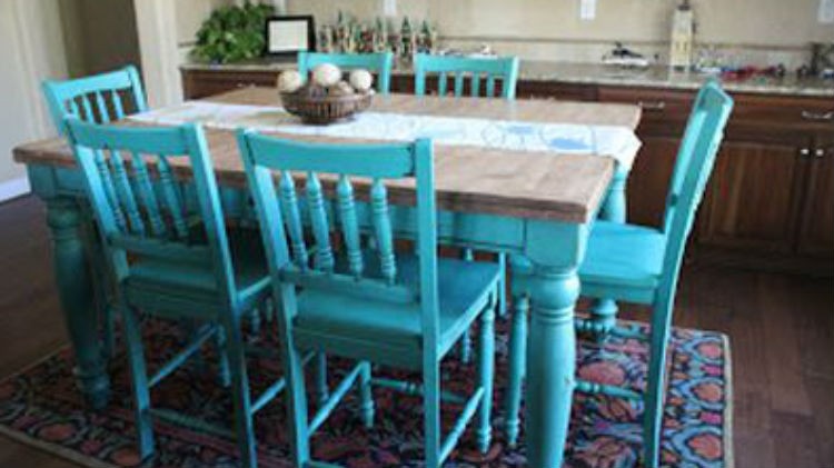 Właściciele zdecydowali, że nowy kolor mebli był bardziej wyraźny i ożywiający kuchnię. Aby zachować jednak odrobinę rustykalności postanowili, że blat stołu w dalszym ciągu będzie miał kolor drewna. Efekty oceńcie sami.